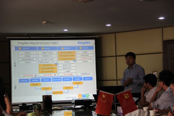 通过会议沟通,双方共同确立了实施的相关事项、确定了各项目小组成员,金蝶方项目总监做了“项目实施方案”和“金蝶实施方法论”的主题讲解。