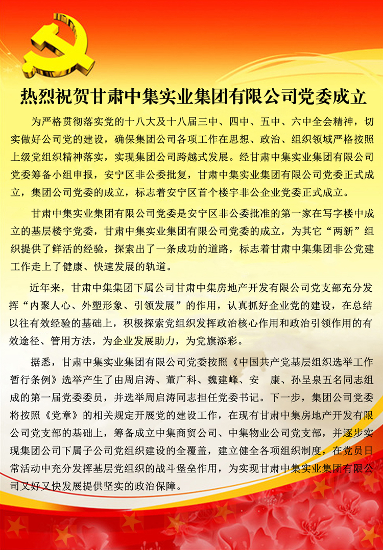 热烈祝贺甘肃中集实业集团有限公司党委成立
