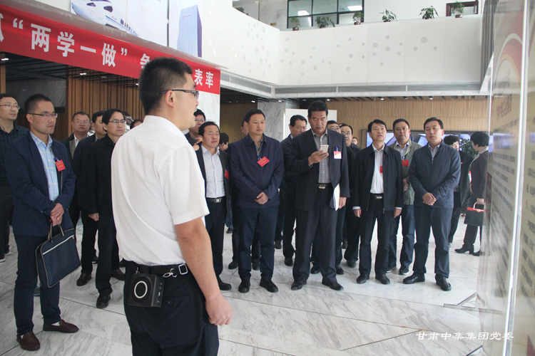 2017年9月28日上午,全省非公经济党建工作现场观摩会在中集理想国际写字楼召开,来自全省各地、市(州)、县(区)组织部部长、全省各地、市(州)、县(区)非公党委负责同志共计50余人莅临甘肃中集集团进行现场观摩。中共甘肃省委组织部副地级组织员周 密带团参加现场观摩,中共兰州市委组织部副部长宋书明、安宁区区委书记王 方、安宁区区委常委、区委组织部部长贾向红、安宁区非公党委副书记何健兴等领导陪同参加观摩,集团公司党委书记、董事长周启涛携集团公司党委委员一并观摩,党委办公室主任魏建峰代表集团公司党委向全体观摩团成员介绍了集团公司党委开展党建工作的主要做法和取得的良好成效。