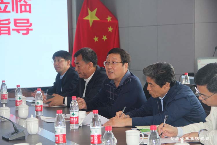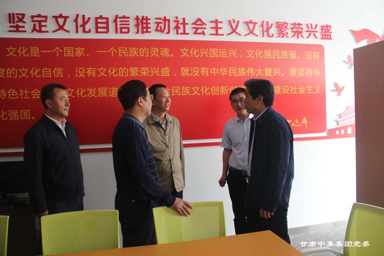 2019年5月21日上午,山西省非公经济组织和社会组织工委副书记、市场监管局党组成员、副局长王国强,山西省市场监管局非公党建处处长朱志东一行6人,在省委非公经济组织和社会组织党工委副书记、甘肃省市场监管局党组成员、副局长肖建胜,甘肃省市场监管局非公经济组织党建工作处处长刘玉圣,兰州市市场监督管理局党组成员、副局长李继军,安宁区市场监督管理局党组成员、副局长苏润彬陪同下莅临集团党委调研非公企业党建工作,集团公司党委书记、董事长周启涛携集团公司党委委员向参观调研组汇报企业党建工作。