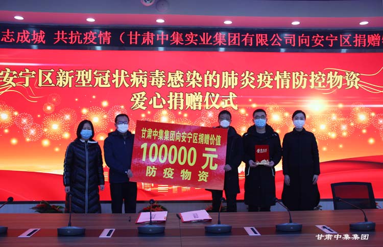 2020年2月7日上午,受甘肃中集集团党委书记、董事长周启涛委托,甘肃中集集团党委副书记董广科、党委委员魏建峰一行前往兰州市安宁区人民政府向安宁区新型冠状病毒感染的肺炎疫情联防联控工作领导小组捐赠10万元防疫物资,为当前疫情联防联控、群防群控工作贡献力量。